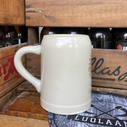 Snapsilasin kokoinen, keraaminen Lahden Olut Mallasjuoma -minituoppi luolarekvisiitaksi!