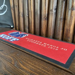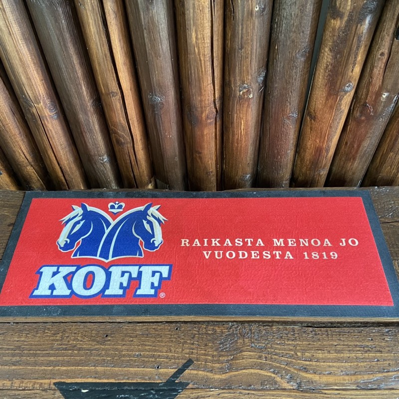 Tästä kotibaarin taikka salakapakan tiskille todella tyylikäs KOFFin baarimatto! Matossa teksti KOFF -Raikasta menoa jo vuodesta 1819. Matto pesunkestävä ja pohja kumipintainen.
