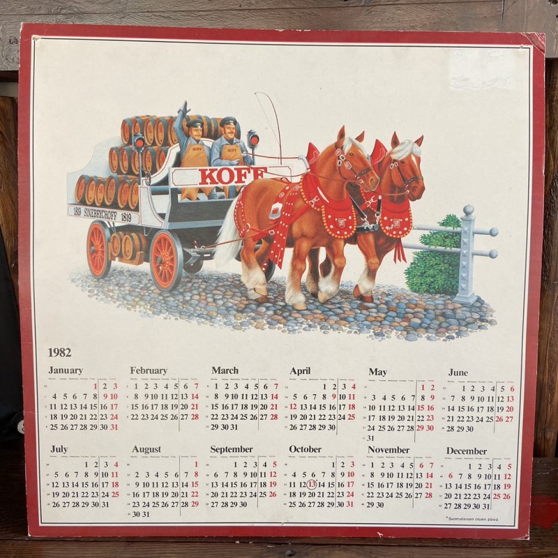 Kippis menneille ajoille! Tässä sulle KOFFin seinäkalenteri ’82 – siinä on niin paljon historiaa, et alat luulemaan ittees jo vanhaks. Mut hei, vanhat on kultaa – kalenteri kans!
